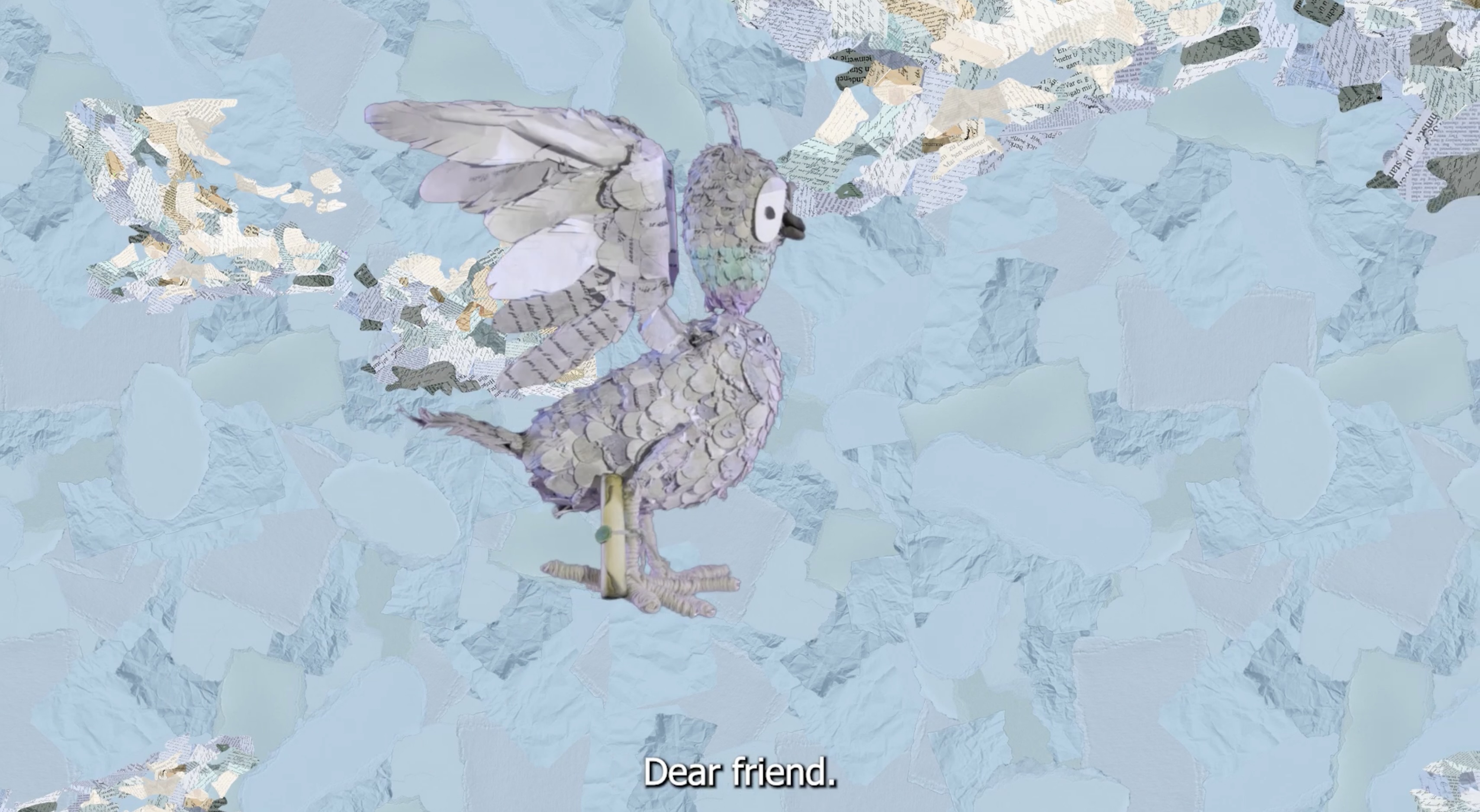 Soja started learning animation by doing a lot of exercises: “I animated a ball bouncing, the stretch and squash, a walk cycle, lip sync. That’s how I started I, I really thought I would immediately start with making stories, but for some reason, I liked experimenting more at that moment.” They made their first animation when they started studying at KASK. In the second semester of their final bachelor's year, they made a film called ‘Cher Ami', which is the film they are most proud of. It’s about a pigeon facing struggles along the way while trying to deliver a letter. They had the most fun doing it because they were working with people for music and green screening. “It was like a little combination of stop motion and paper animation, and I think it's the most me film I've ever made.”